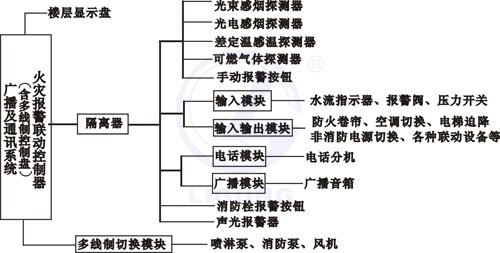 系統(tǒng)不僅具有消防聯(lián)動(dòng)控制系統(tǒng),而且還有消防廣播系統(tǒng)及消防通訊系統(tǒng)