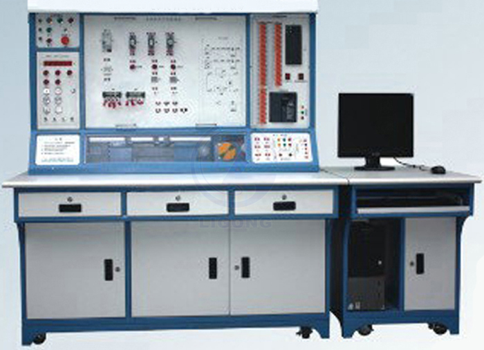 實訓(xùn)屏部分:實訓(xùn)屏分上下兩部分,上部分掛箱(模塊)空位,以及PLC,公用按鍵指示燈板,漏電開關(guān);下部分是門機系統(tǒng)模擬控制區(qū)和三相電機,操作過程及結(jié)果直觀移動,并設(shè)置了門機減速開關(guān)位置調(diào)節(jié),并且控制端都以插線端子的形式引出,方便學(xué)員實訓(xùn)。