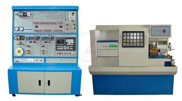 數(shù)控實(shí)訓(xùn)臺完全采用工業(yè)化的器件,將一臺數(shù)控車床的電控系統(tǒng)在實(shí)訓(xùn)臺上進(jìn)行分解展示,并設(shè)計(jì)有強(qiáng)電柜,便于進(jìn)行電氣維修實(shí)訓(xùn),數(shù)控系統(tǒng)采用西門子公司的“SINUMERIK 802C base line”,并安裝在車床上,便于進(jìn)行加工操作。