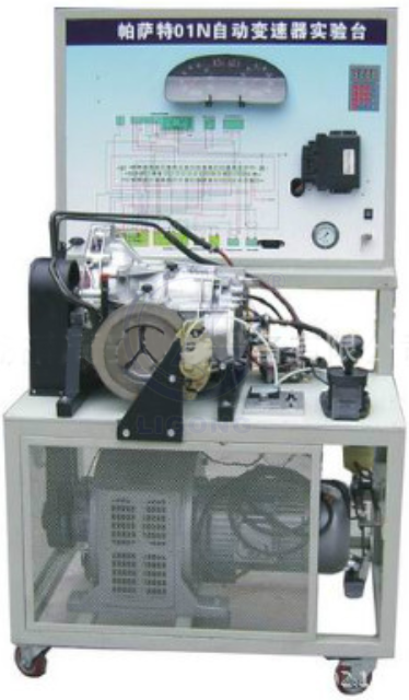 實訓(xùn)臺面板上分布電腦控制電路;由實際的自動傳動系統(tǒng)控制電腦ECU實現(xiàn)對試驗過程的控制;采用液壓機械加載方式,通過液壓系統(tǒng)對與輸出軸連接的摩擦盤施加壓力而產(chǎn)生制動力