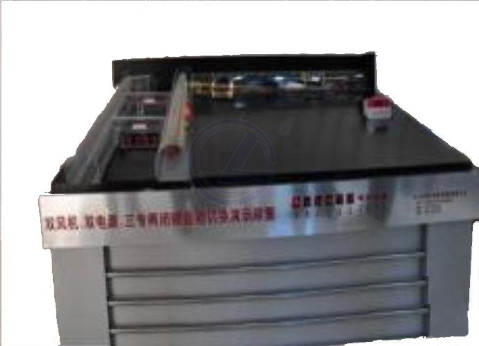 三專兩閉鎖演示裝置通過(guò)聲光機(jī)械控制技術(shù),顯示出了井下局部通風(fēng)機(jī)雙風(fēng)機(jī)、雙電源、自動(dòng)切換、三專二閉鎖系統(tǒng)的布置,運(yùn)行方式。