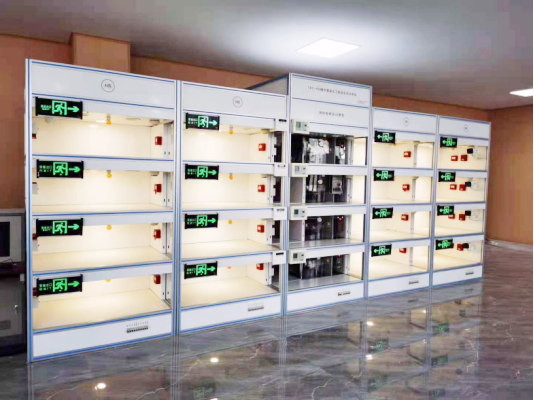 由鋁合金型材框架和安裝布線高密度墻板組成,6000mm×1080mm×2400mm。(長(zhǎng)×寬×高),分為智能大樓、管理中心和樓道等區(qū)域,智能大樓設(shè)計(jì)為管理中心兩大區(qū)域結(jié)構(gòu),器件采用內(nèi)六角螺絲和工程塑料卡件配合安裝。