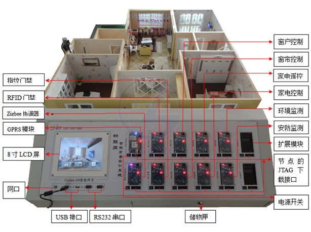 LGWL-JJ01型 物聯(lián)網(wǎng)智能家居教學(xué)實訓(xùn)系統(tǒng)以高性能低功耗的中央控制器為核心,結(jié)合多種物聯(lián)網(wǎng)無線組網(wǎng)及控制技術(shù),對系統(tǒng)中的家居、家電單元進(jìn)行監(jiān)視和控制。