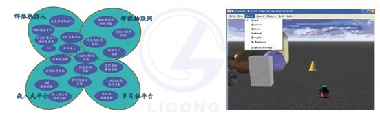 移動機器人的尋線跟蹤、探測、定位導(dǎo)航和自主避障等實驗 群體機器人的跟隨、編隊、協(xié)作和自組裝等實驗 多關(guān)節(jié)機器人的步態(tài)實驗 |