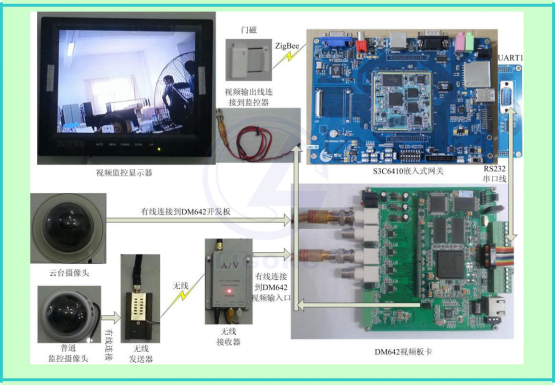 平臺采用視頻采集處理技術(shù)、315M/ZigBee 無線傳感技術(shù)、嵌入式網(wǎng)關(guān)技術(shù)、嵌入式 Linux 開發(fā)技術(shù)等,實(shí)現(xiàn)多路視頻訪問、視頻壓縮、視頻傳輸、云臺無線控制等,并結(jié)合門磁或人體探測器,實(shí)現(xiàn)視頻安防監(jiān)控的功能。