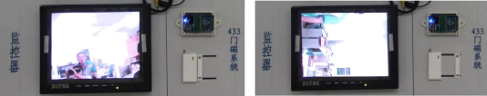 監(jiān)控器上正常監(jiān)控時(shí)的畫面 門磁觸發(fā)時(shí)的監(jiān)控畫面