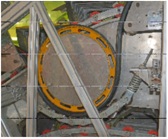 防逆轉(zhuǎn)裝置如下圖,裝置裝在扶梯上部驅(qū)動(dòng)位。在扶梯上行時(shí)凸輪順時(shí)針轉(zhuǎn)動(dòng),若扶梯發(fā)生異常情況而逆轉(zhuǎn)則凸輪逆轉(zhuǎn),此時(shí)打桿使限位開關(guān)動(dòng)作并使扶梯主剎動(dòng)作從而使扶梯停止,反之亦然。同時(shí)此功能具備手動(dòng)測試操作功能。