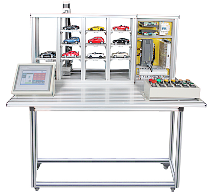 本立體倉庫實(shí)訓(xùn)系統(tǒng)可以完成車輛的手動(dòng)和自動(dòng)迫車、車位信息狀態(tài)顯示。它主要包括以下幾個(gè)部分:鋁型材臺面、觸摸屏、倉庫本體、車盤、電氣板、氣動(dòng)二聯(lián)件、按鈕盒和二維運(yùn)動(dòng)機(jī)構(gòu)等。