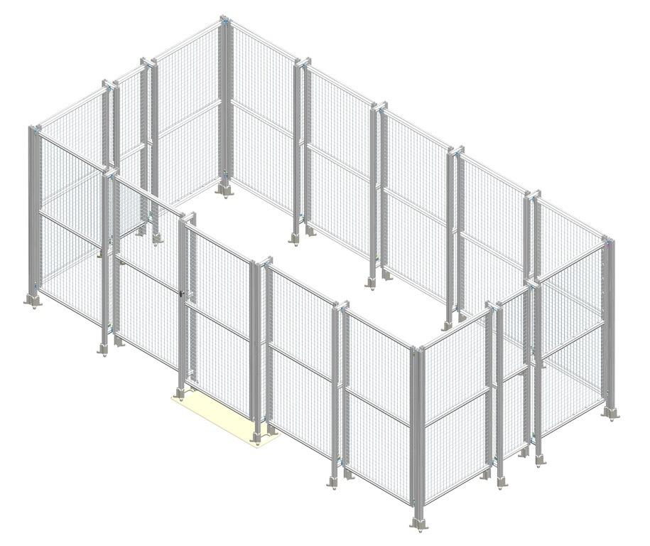 安全防護(hù)欄采用優(yōu)質(zhì)鋁型材搭建,中間部分為黃色網(wǎng)格。