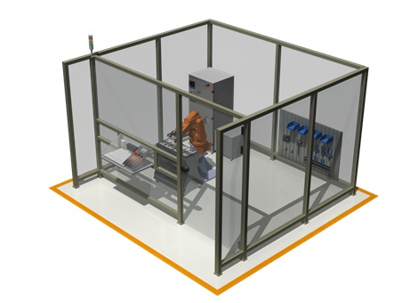 13、安全護欄:隔離護欄,高1000mm,框架采用2mm厚灰色棟梁鋁合金型材,鋼化玻璃10mm厚;工作站全部通透利于觀察,玻璃中間沒有隔斷;并安裝一個側(cè)開門;門上安裝安全檢測元件,機器人自動運行必須在門關(guān)閉狀態(tài)下進行;系統(tǒng)工作站安裝有3個急停按鈕,分別位于操作控制臺、模型安裝臺、隔離護欄上,以備緊急情況使用。