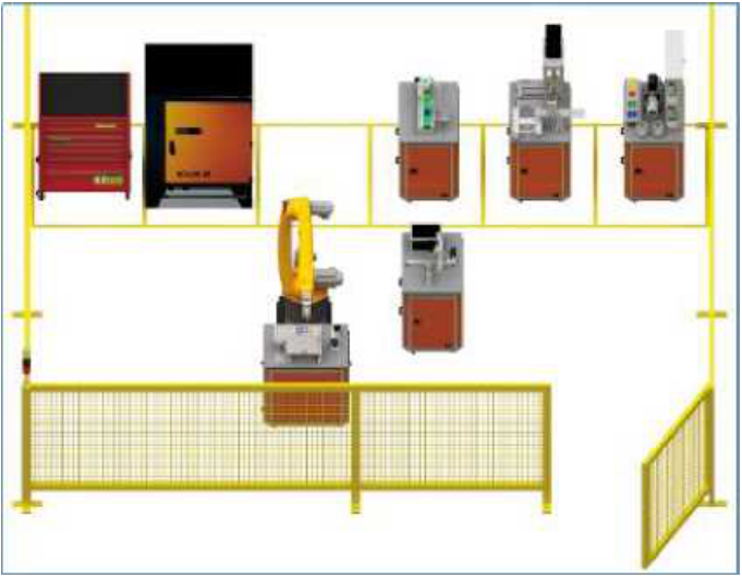 工業(yè)機(jī)器人組合移動式實訓(xùn)裝置由工業(yè)機(jī)器人模塊、配套多種典型工程應(yīng)用模塊、多種末端工具模塊、PLC控制柜及其它附件組合搭建而成。