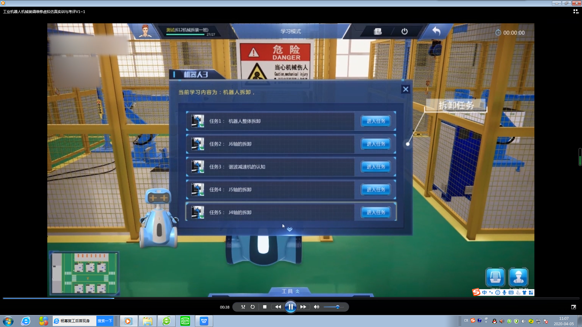 3、工業(yè)機器人機械裝調維修虛擬仿真軟件系統(tǒng)功能模塊完整:配套實訓平臺多模式,學習、練習、考試一體化。學習模式包含工業(yè)機器人拆裝作業(yè)準備、機器人本體拆卸、機器人本體安裝、機器人初步調試四個項目,不少于27個任務。練習模式包含機器人某軸減速機更換、機器人某軸電機更換、機器人油脂更換、機器人部分零部件更換等8個綜合性任務。