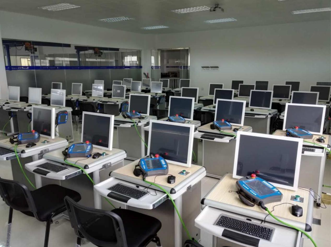 LGH-LS01型 機器人理實一體化實訓系統(tǒng)是針對機器人教學的一款產品,具有成本低,安全性高優(yōu)勢。該產品能夠通過示教器操作 PC 上的虛擬機器人進行運動控制,且運動過程中沒有噪音。當教師從理論上講解之后,學生就可以動手操作機器人,能夠激發(fā)學生對機器人課堂學習的興趣,提高學生和老師之間的互動性。機器人理實一體化實訓系統(tǒng)用真實的示教器和真實的控制器控制模擬軟件上的虛擬機器人,模仿真實的機器人運動。省去伺服驅動、減速器、電機、機器人本體,節(jié)省成本。對于教學產品來說,安全性是很重要的,由于沒有使用實際的機器人本體,所以不存在安全隱患。