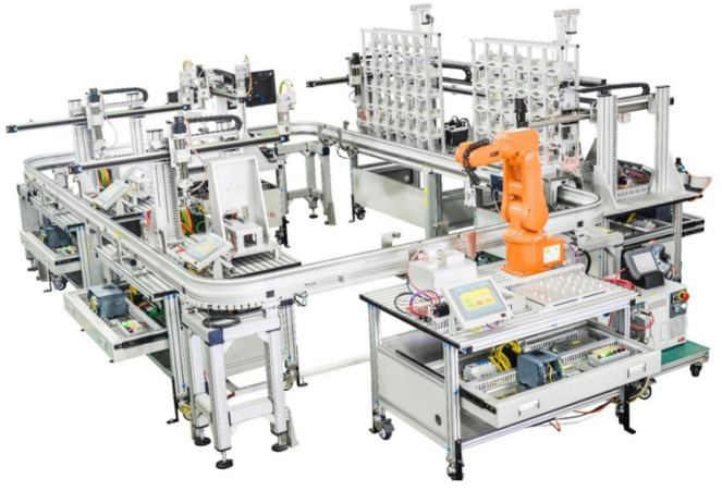 主要由生產(chǎn)線中元器件組成,如傳感器、氣動元件、電機(jī)、工業(yè)機(jī)器人、儀器儀表、按鈕、指示燈等之間形成邏輯,執(zhí)行相關(guān)的動作和反饋當(dāng)前狀態(tài)。