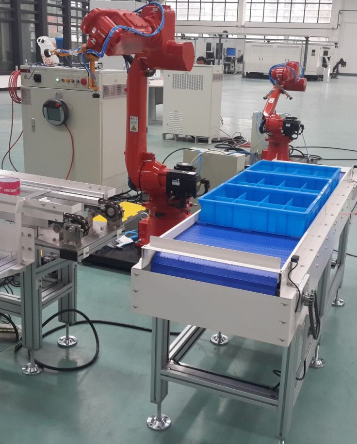 (1) 選用6軸關(guān)節(jié)型工業(yè)機器人+堆垛直角坐標(biāo)機器人+AGV移動機器人,該三種機器人都是目前工業(yè)現(xiàn)場應(yīng)用比較廣泛的機器人;——切合工業(yè)現(xiàn)場,體現(xiàn)機器人的多樣性;