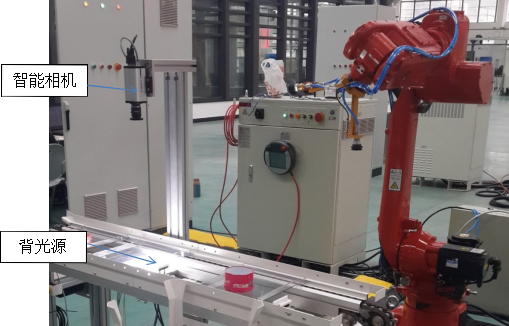 (5) 視覺系統(tǒng),對托盤流水線上的托盤上的物品進(jìn)行識別,并把識別結(jié)果發(fā)送至主控系統(tǒng)的PLC;