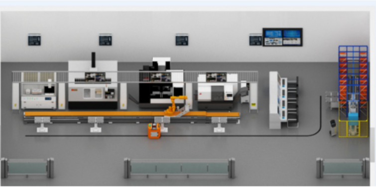數(shù)控機床加工制造單元及其自動化改造、自動激光打標單元、自動化立體倉儲單元、工業(yè)機器人上下料單元、 AGV運載單元、監(jiān)控單元、系統(tǒng)中央控制單元等多個功能模塊單元組成了智能制造生產線系統(tǒng).