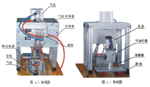 該配置配有多種類型的氣缸、電磁閥,磁性開關(guān),如:?jiǎn)纬鰲U氣缸、單出雙桿氣缸、旋轉(zhuǎn)氣缸等氣動(dòng)執(zhí)行元件、單控電磁閥、雙控電磁閥和磁性開關(guān)等,基于這些氣動(dòng)控制元件,可完成下列氣動(dòng)技術(shù)的安裝調(diào)試訓(xùn)練任務(wù):