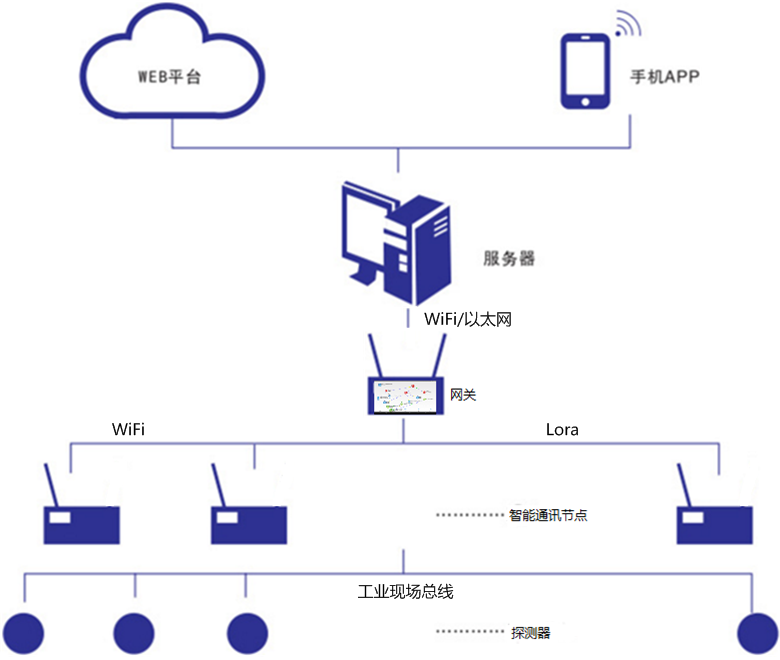 由空氣質(zhì)量傳感器、粉塵傳感器、噪音傳感器、智能通信節(jié)點等組成,具有空氣質(zhì)量監(jiān)測、揚塵監(jiān)測、噪音監(jiān)測功能。智能通信節(jié)點與網(wǎng)關(guān)互聯(lián)互通,上報環(huán)境監(jiān)測數(shù)據(jù),通過網(wǎng)關(guān)發(fā)布到云平臺展示。
