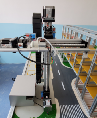 模擬的立體倉(cāng)庫(kù)的庫(kù)位是可伸縮移動(dòng)的。它主要由電動(dòng)絲杠滑臺(tái)、滑臺(tái)驅(qū)動(dòng)器、滑臺(tái)控制器三部分組成,安裝在鋁合金框架內(nèi),形成一個(gè)至少4庫(kù)位的立體倉(cāng)庫(kù)。