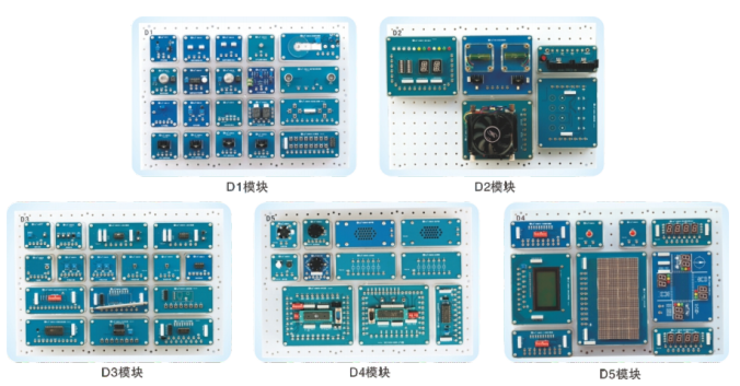 本設備是將實際應用中單元電路模塊化。學生通過模塊間的搭接,很方便就能搭建成各種實際產(chǎn)品,模塊搭成產(chǎn)品的范圍涉及家電,工業(yè),無線等方面內(nèi)容。單元模塊電路包括傳感器,信號處理,顯示,執(zhí)行本體,接口電路,微處理器等模塊。模塊都采用透明盒裝配,模塊間采用排插和接線柱連接,使實訓模塊能夠靈活按教學要求或競賽要求搭建成各種實際產(chǎn)品。
