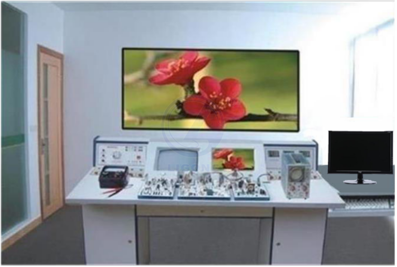 本裝置由實(shí)訓(xùn)臺(tái)、實(shí)訓(xùn)桌、顯像管箱、5.1聲道揚(yáng)聲器系統(tǒng)和實(shí)訓(xùn)組件五部分組成