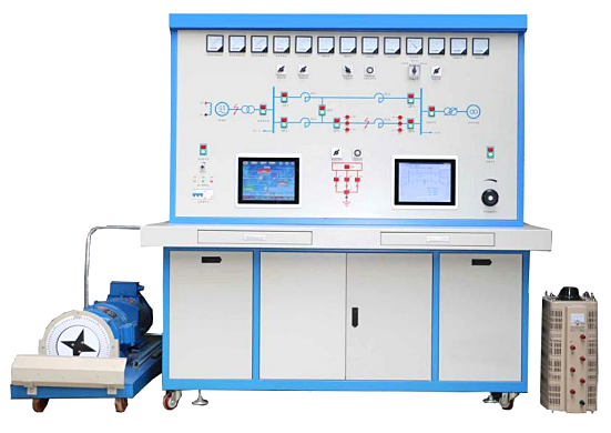 2、實(shí)驗(yàn)平臺(tái)由實(shí)驗(yàn)發(fā)電機(jī)組、發(fā)電機(jī)組控制柜、系統(tǒng)實(shí)驗(yàn)屏、無(wú)窮大系統(tǒng)、阻感性負(fù)載、監(jiān)控調(diào)度系統(tǒng)等組成。
