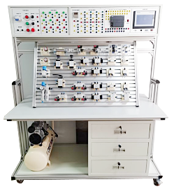 1、系統(tǒng)采用電、氣一體化結(jié)構(gòu),下半部分為標(biāo)準(zhǔn)化氣動實(shí)訓(xùn)板,用以完成氣動元件的安裝固定、氣路及電路的連接;上半部分為自動化控制箱,用以完成PLC、低壓電器等的安裝和接線。
