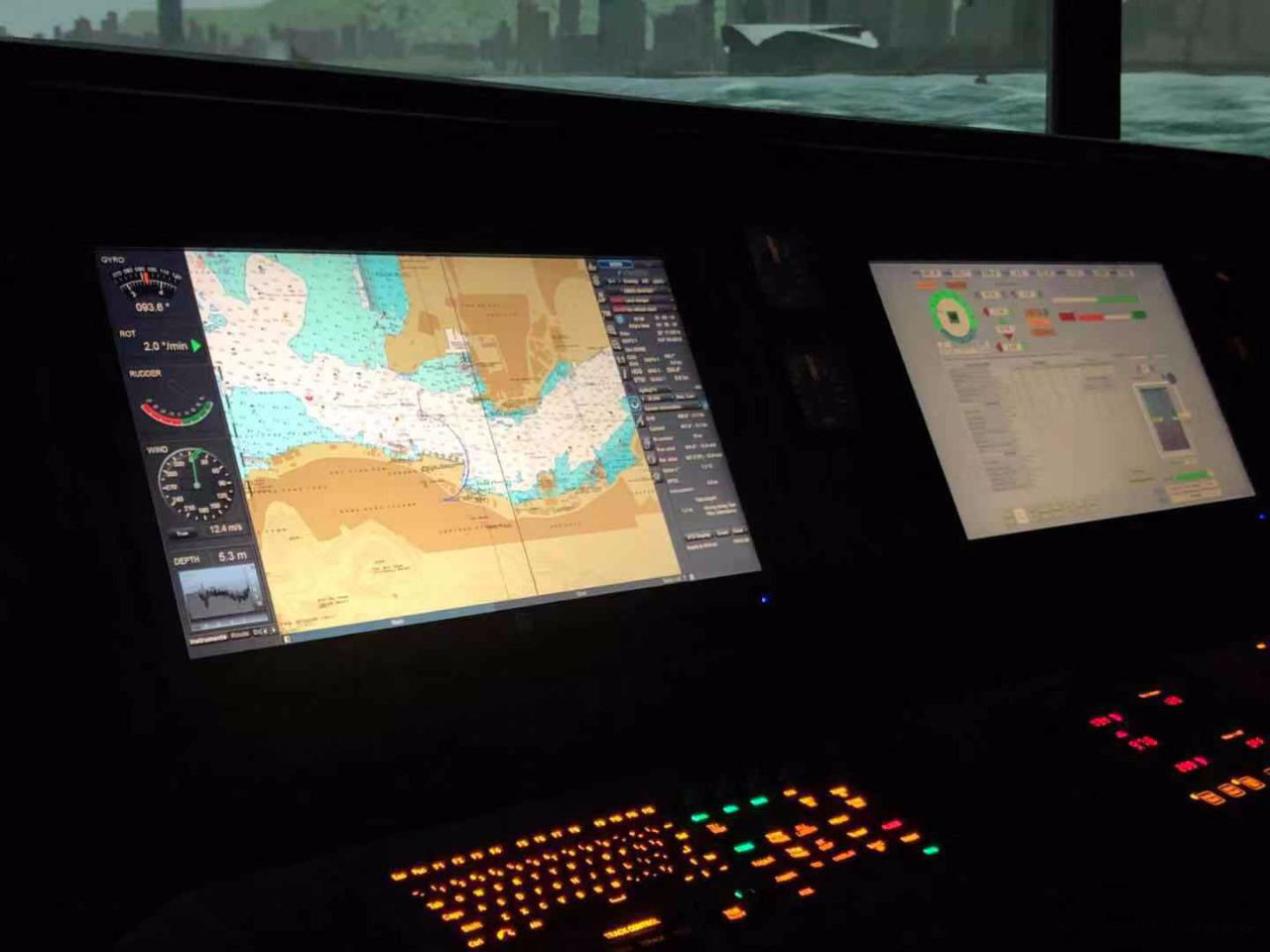 LGM-CB03T型 高速艦艇航海訓(xùn)練模擬器船舶駕駛室內(nèi)有雷達(dá)、測深儀、GPS、AIS、電子海圖等高科技設(shè)備,窗外是寬闊的江面。公司研制的船舶操縱模擬器的建設(shè)以高速巡邏艦艇駕駛室為模擬器原型并在此基礎(chǔ)是兼顧了海船的特點(diǎn),方案的建設(shè)內(nèi)容為船舶操縱模擬器1套,其中包括教練員站1套,120度水平視場角本船1套(采用3通道液晶電視顯示)。本船系統(tǒng)主要由船舶控制模塊、雷達(dá)模塊、電子海圖模塊、通訊模塊、導(dǎo)航儀器模塊、音響模擬模塊等構(gòu)成,其功能和布置與實(shí)船基本一致。