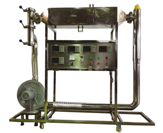 4. 洞道干燥實驗裝置布局合理,干燥箱、管道采用不銹鋼制作,干燥過程在帶硅酸鋁保溫棉的不銹鋼板制作的干燥風道中進行,風道入口裝有氣流均布板。