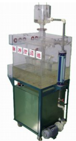 有機(jī)玻璃脈沖澄清池、進(jìn)水管、放空管、水泵、配水箱、轉(zhuǎn)子流量計(jì)、連接管道和球閥、電控箱、不銹鋼臺(tái)架。