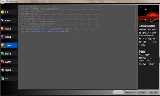 (4)檢查方法: 對(duì)屏幕上出現(xiàn)的問題通過工作臺(tái)上的數(shù)字選擇鍵(1、的確如此;2、似乎如此;3、不太象;4、的確不是)作出回答。 根據(jù)回答結(jié)果作出評(píng)價(jià)。