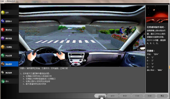 4.危險(xiǎn)感知測試:用來檢測被測試人的危險(xiǎn)感知能力和緊急反應(yīng)能力。